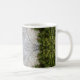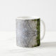Custom, cool digital art photography pattern of furry green moss and textured sandy marble earth.