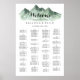 This green mountain country alphabetical seating chart is perfect for a rustic wedding. The design features a watercolor hand-painted green mountain, inspiring a countryside theme.