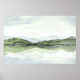 Green Mountain Reflection Lake Landscape Watercolor Minimalist Art Hand Painted.