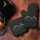 Black Oven Mitt & Pot Holder Set with mountains landscape and a customisable text in green colour. Perfect for Mother's of Father's Day, to make a gift to your mum, a cooking or pastry chef or for newlyweds!