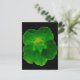 This postcard features a photograph of a Nasturtium flower. The photo has been artificially coloured resulting in dark green flower full of different tones that make it look both haunting and beautiful. The background is black.