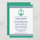 Green and navy blue invitations with heart anchor and nautical stripes.