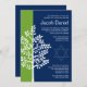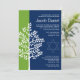 Modern green and navy blue Tree of Life Bar Mitzvah invitations. Easily personalise for your event.