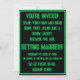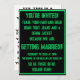 A retro wedding invitation. Do you miss the 80's? Are you stumped on a theme for your upcoming wedding? Here is the answer to all of your worries! Have an 80's themed wedding and everyone will be happy. Start with this neon green on black wedding invitation, it also has answers to the most frequently asked questions to save you time from having to answer them 300 times.