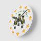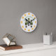 This Nutcracker themed design features a trio of green toy soldiers. The outer ring is comprised of twelve gold fleur-de-lis that mark the hours. The current green text reads, "Time To Crack The Nuts" and can be personalised with your own words. The background colour can also be changed by using the Edit Design button.