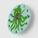 This octopus design wall clock is a timekeeping device designed to hang on a wall, serving as both a functional tool and a decorative focal point for a room. Made from acrylic and features a pre-installed backside hanging slot for easy hanging and a non-ticking design. You can customise this wall clock with any text of your choice. Should you require any help with customising then contact us through the link on this page. Green octopus design wall clock