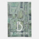 Trendy artsy aesthetic monogram family name kitchen towel.Custom personalised with your initial or initials and a name or family name or a text at your wish.If you don’t need the typography, it can be simply deleted.Modern monochromatic aspect, with subtle nuances of sage green,olive green,teal blue,grey.Muted powdered tones,grunge distressed look for the script and for the decorative design.Textile texture in abstract geometric composition. Easy to match in any ambient,especially for modern farmhouse,lake house or even beach house decoration style.Simple artistic patchwork variation, home decor accent for you or as a beautiful creative original thoughtful gift idea.