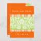 Green Orange Coral Damask Wedding Save the Date. Budget Friendly Cheap Affordable