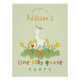 This cute and fun kids 1st birthday welcome sign poster design features one silly goose with a party hat in a field of flowers, and can be personalised with your child’s name in cute and colourful typography. The perfect floral farm design for your little one's first birthday!