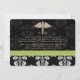 Add your photo or favourite picture to these elegant and formal black and white floral damask optometry school graduation announcements and invitations with a gold snake caduceus and printed lime green stitched ribbon look design for the graduating dentist. Customise it to say whatever you want on the back and front of these optometrist graduate graduation invitations with the initials D.O. on the back. Artwork © Chrissy H. Studios, LLC. All rights Reserved.