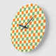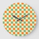 Green Orange Brown Chequered Gingham Pattern Large Clock