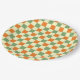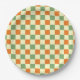 Green Orange Brown Chequered Gingham Pattern Paper Plate