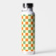 Green Orange Brown Chequered Gingham Pattern Water Bottle