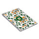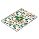This soccer themed spiral notebook features a pattern of randomly arranged green, orange and white soccer balls in varying sizes turned every which way on a white background - player name and monogram or jersey number are customisable - by katz_d_zynes