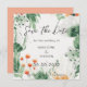A modern and beautiful floral save-the-date card with a lovely wildflower watercolor design and a white, green, and orange colour scheme, accented by a contemporary calligraphy font for a fashionable yet romantic look.
