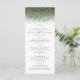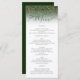 An elegant wedding menu card designed with a deep green background decorated with classic damask lace patterns at the top, featuring ornate and sophisticated detailing with capitalised headings and graceful typography, giving a timeless, formal, and artistic presentation for a wedding reception.