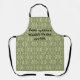 This apron has an art deco design of three ovals broken across two very thin rectangles in camo green on a field of light green. Keep the text, change it, or delete it completely. Want the same design with different colours? Message me