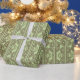 This wrapping paper has an art deco design of three ovals broken across two very thin rectangles in camo green on a field of light green. Want the same design with different colours? Message me