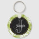 Green Palm Leaves Rainforest Pattern Monogram Key Ring