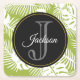 Green Palm Leaves Rainforest Pattern Monogram Square Paper Coaster