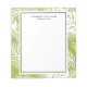 with a repeating pattern of large palm leaves on an olive green background. Trendy modern and tropical. A white rectangle with a black border layered over top.
