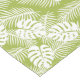 A tablecloth with a repeating pattern of large palm leaves on an olive green background. Trendy modern and tropical.