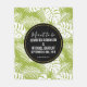 Meant to be, wedding blanket with a repeating pattern of large palm leaves on an olive green background. Trendy modern and tropical. A black circle with a gold inner border layered over top with your personalised details inside.