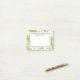 Sticky notes with a repeating pattern of large palm leaves on an olive green background. Trendy modern and tropical. Layered over top is a white rectangle with a black border. Personalise with your own text - such as your wedding names and date.