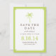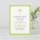 Stylish save the date announcements perfect for a summer or tropical destination wedding feature a beautiful illustration of a palm tree and an elegant nautical stripes pattern on the back. Visit our store for more colour options and matching products.