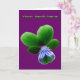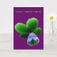 This greeting card features a photograph of a wild Pansy flower. The photo has been artificially coloured resulting in a pansy with light and dark shades of green and a pale blue centre. The background is purple to show off the beauty of this flower to the maximum. There is customisable green text above the pansy, on the front of th card, making this card suitable for any occasion.