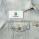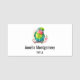 Name tag with a cute parrot illustration. A little green parrot with blue and yellow colours blending together. Neck has a vibrant shade of reddish pink.
