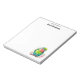 Notepad with a cute parrot illustration. A little green parrot with blue and yellow colours blending together. Neck has a vibrant shade of reddish pink.