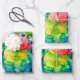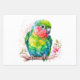 Wrapping paper sheets with a cute parrot illustration. A little green parrot with blue and yellow colours blending together. Neck has a vibrant shade of reddish pink.