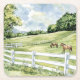 Green Pastures Ranch Horses Square Paper Coaster