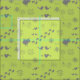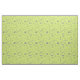 green pattern of birds, dots, footsteps, flowers, and hearts