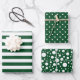 Three patterns in green and white: basic stripes, polka dots and random spots.