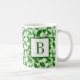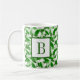 Enjoy your coffee or tea while feeling like you're in a vegetable garden. This mug features a design of pea pods and white flowers. Personalise with your initial to make it extra special.