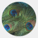 The vibrant green of the peacock feathers look stunning in this picture. This still life of a peafowl is neat.
