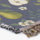 The pattern on this throw blanket showcases beautifully hand-painted watercolor pears in lush green tones, surrounded by flowing leaves and subtle floral details. The deep navy background enhances the vibrancy of the artwork, creating a sophisticated botanical design that feels both organic and timeless.