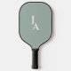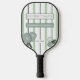 The front showcases stylish pickleball paddles, personalized monograms, and soft green and white pickleballs against a modern mint and sage striped background. The back coordinates with the couple’s monograms on a sage green background for a polished, cohesive look. Perfect for celebrating a match made in heaven, love, laughter, and shared hobbies.