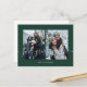 Personalised dark green 2 best friends, weddings or family photos Universal Greetings Postcards featuring a stylish photo collage with 2 customised images, your greetings message in elegant handwritten script font, your name, date, year, message on the back in a modern and simple sans serif font.
