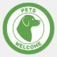 Green Pets Welcome With Cute Dog Head Silhouette Classic Round Sticker