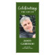This simple and modern white text on forest green photo memorial ceremony program is a beautiful way to remember a loved one during the celebration of life service.
