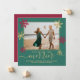 Modern, Elegant Green, Red and Gold Snowflakes Photo Christmas Pregnancy Announcement Cards. Expecting parents! Features one (1) photo template, red and gold snowflakes, with the text "the more the merrier". The "merrier" word is written in a swirly hand lettered typography font on green or middle forest green colour background. Burgundy colour back side. This winter pregnancy card great to share your happy news with family and friends in the holiday season. Easy to personalise it. If you need help or matching items, please contact to designer!