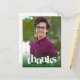 Make sure your favourite grad shows appreciation to all who supported their milestone event! Send out this stunning, simple, modern, personalised photo thank you postcard. Bold, graphic, white typography and a hunter green gradation overlay a photo of your choice. On the front, personalise the custom text with your grad’s name and class year. Add a personalised note on the back in soft grey typography, under the hunter green cap icon. Guaranteed to add a stylish touch to their correspondence! Matching announcements, address labels, yard signs, banners, cap toppers, napkins, plates and other graduation goodies are also available in this trendy and elegant collection. Guaranteed to add stylish fun to their special occasion!
