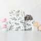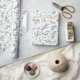 Scattered pine boughs fall softly across this snowy white wrapping paper.