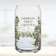 Elevate your vacation rental with our Green Pine Forest Family Lake House Cabin Can Glass. Featuring woodland watercolor illustration. Personalise it and add a touch of nature charm to your lake house.