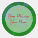 A holiday theme forest green background with a blue and green pine pattern created from a vintage etching. Add your own personal message to this sticker!