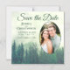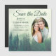 Green Pine Rustic Oval Photo Wedding Save the Date Magnetic Invitation