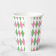 Fun yet refined, this green and pink argyle paper cup is a stylish finishing touch that elevates your golf-themed party and keeps the celebration looking sharp from the first toast to the final cheers.